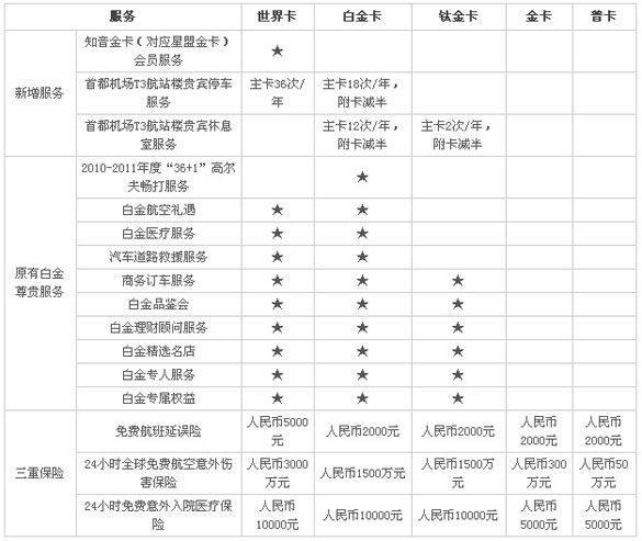 (三)在原有功能性服务项目的基础上,针对钛金卡(含)以上卡片,对应新增不同档次的商旅服务功能(如:首都机场T3航站楼贵宾休息室服务、贵宾停车礼遇、星空联盟金卡服务等项目)。