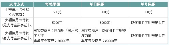 为提升用户网上购物体验,并保障用户网上购物用卡安全,控制信用卡交易风险,支付宝对其“快捷支付”产品的交易限额进行了调整,现将调整后的民生信用卡-支付宝“快捷支付”限额公示如下: