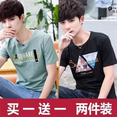 两件/单件 /男士短袖t恤夏季款潮流圆领学生大码韩版修身潮牌半袖
