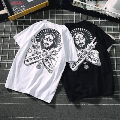短袖t恤男夏季男士薄款休闲港风青少年圆领宽松学生韩版上衣潮流
