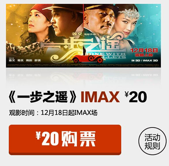 6. 本活动仅限格瓦拉生活网上支持购买的《一步之遥》IMAX首映场在线购票的所有场次,此优惠不可与其他优惠共享。一旦售出不退不换;