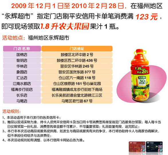 活动时间:即日起至2010年2月28日,[福州]平安欢乐送—永辉购物享好礼!