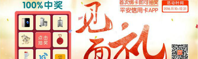 2、活动期间,每人仅限1次抽奖机会,抽奖结果实时告知,中奖客户可通过平安信用卡APP活动页面“我的礼品”查询中奖礼品;