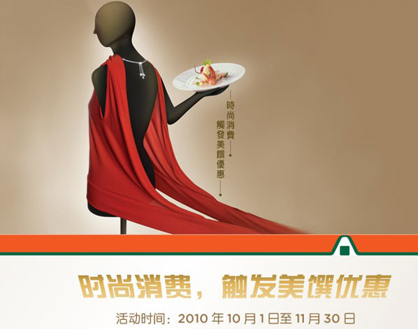 活动时间:即日起至2010年11月30日,[平安银行信用卡]时尚消费,触发美馔优惠