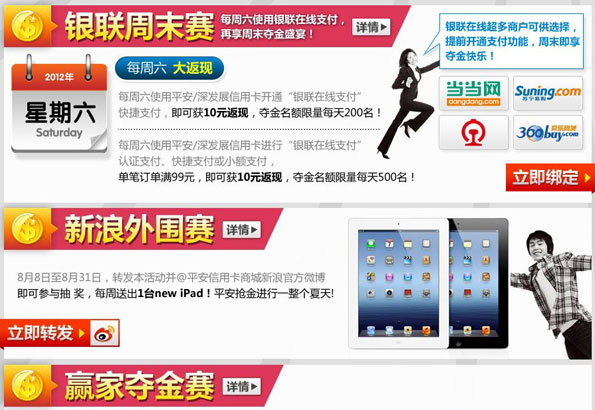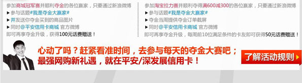 活动主题:[全国]平安银行信用卡夺金总动员8-9火爆进行中
